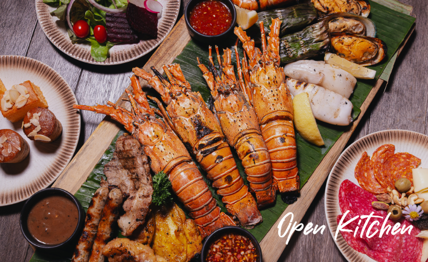 Experience Unlimited Lobster Night with Phuket lobster, BBQ seafood, premium meats, oysters, fine cheeses and live music, enjoyed by the lake with refreshing breezes and live cooking stations. Date: Every Thursday from 6:00pm - 9:30pm Price:THB1,499++ per adult Kids pay half price Venue: Open Kitchen restaurant
